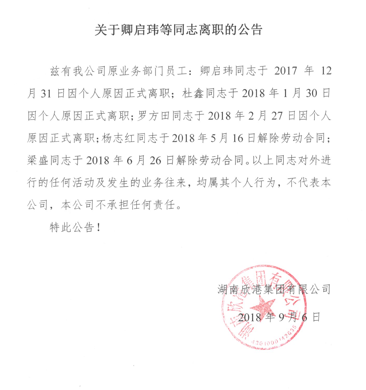 當前位置:首頁 > 資訊中心 > 關于卿啟瑋等同志離職的公告