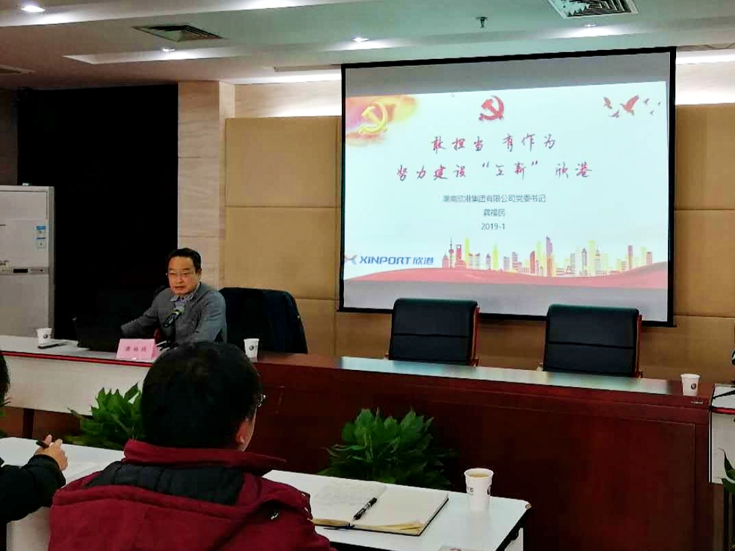 1月21日下午,欣港集團黨委書記龔福民以《敢擔當,有作為,努力建設“三新”欣港》為題,深入解讀何為擔當作為,共產(chǎn)黨員為什么要擔當作為,以及如何在建設“三新”欣港的實踐中落實共產(chǎn)黨員的擔當作為。欣港機關支部全體黨員、子公司經(jīng)理層及總部全體員工參與學習。