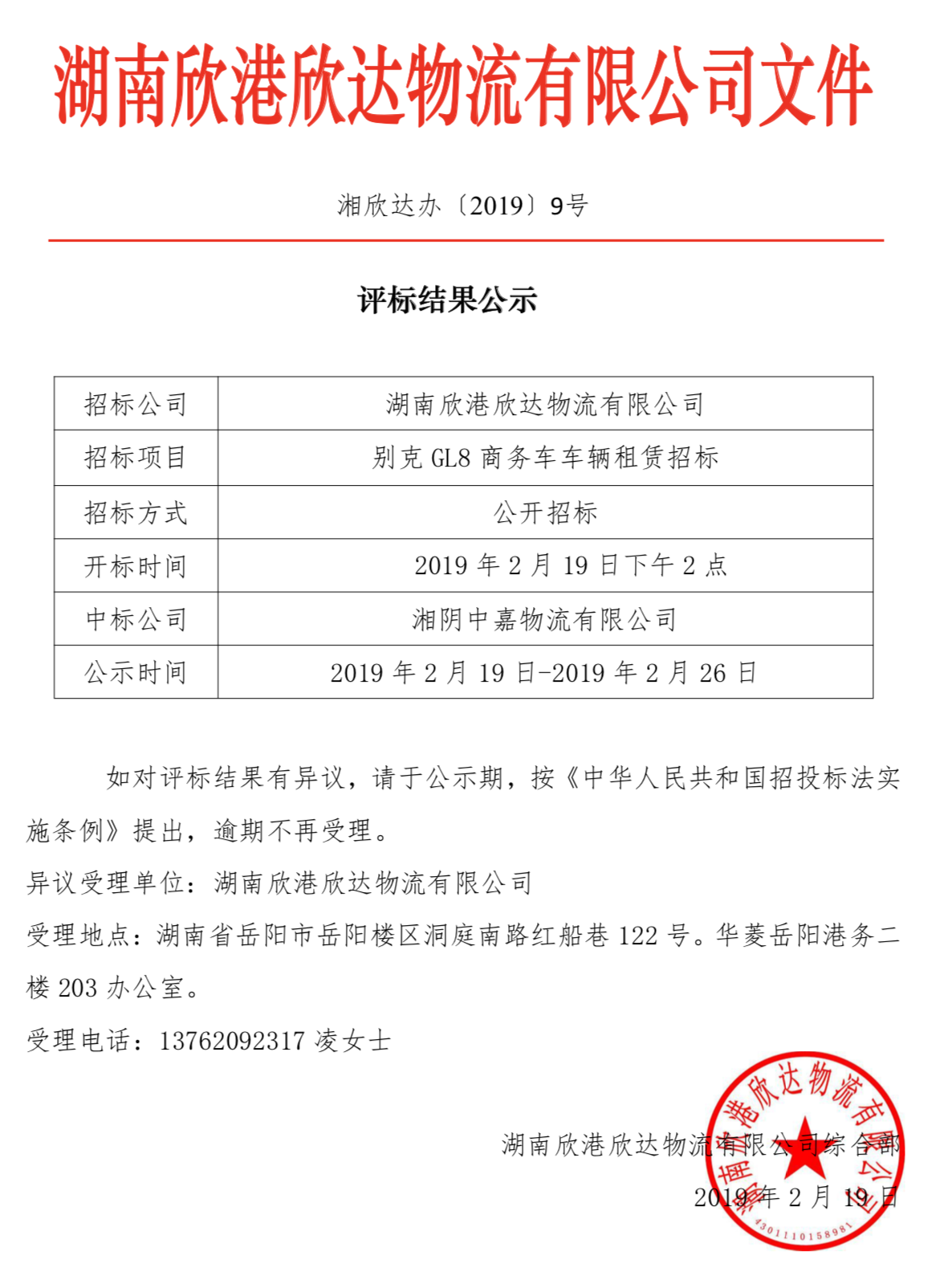 當(dāng)前位置:首頁(yè) > 資訊中心 > 湖南欣港欣達(dá)物流有限公司別克GL8商務(wù)車車輛租賃評(píng)標(biāo)結(jié)果公示