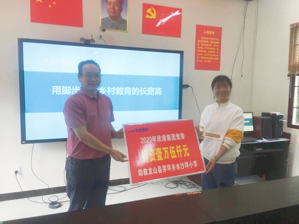 在捐贈活動現(xiàn)場, 欣港集團黨委書記、總經(jīng)理龔福民代表欣港集團向水沙坪小學捐資1.5萬元,用以購買課桌椅及學生宿舍床鋪,進一步改善當?shù)亟虒W生活條件,提升基礎教育質(zhì)量,助力教育脫貧攻堅。