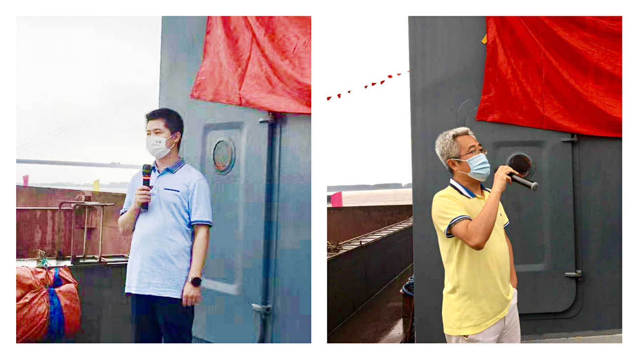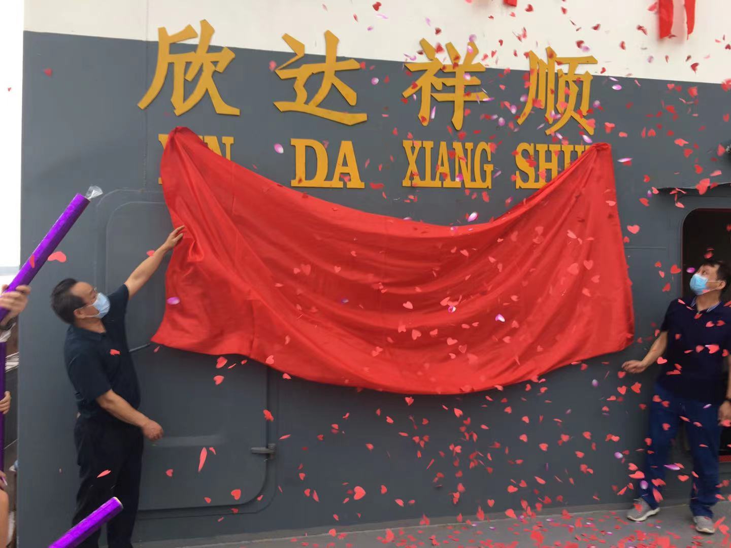 2021年8月10日,在做好疫情防控的情況下,“欣達(dá)祥順”號(hào)交船儀式在湖南省岳陽(yáng)市道仁磯港隆重舉行,欣港集團(tuán)董事長(zhǎng)李俊峰、總經(jīng)理龔福民出席交船儀式,親自為“欣達(dá)祥順”號(hào)揭牌,并分別發(fā)表重要講話。